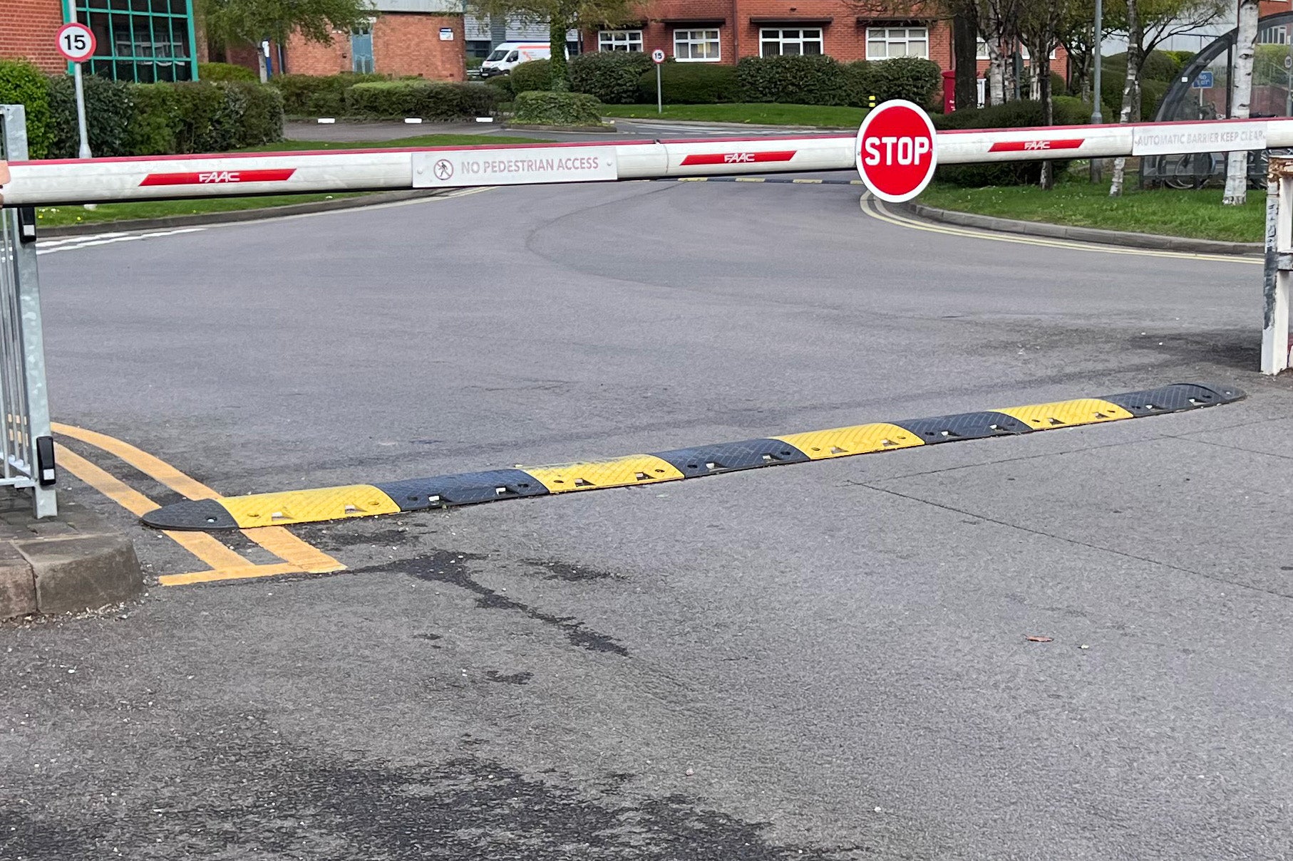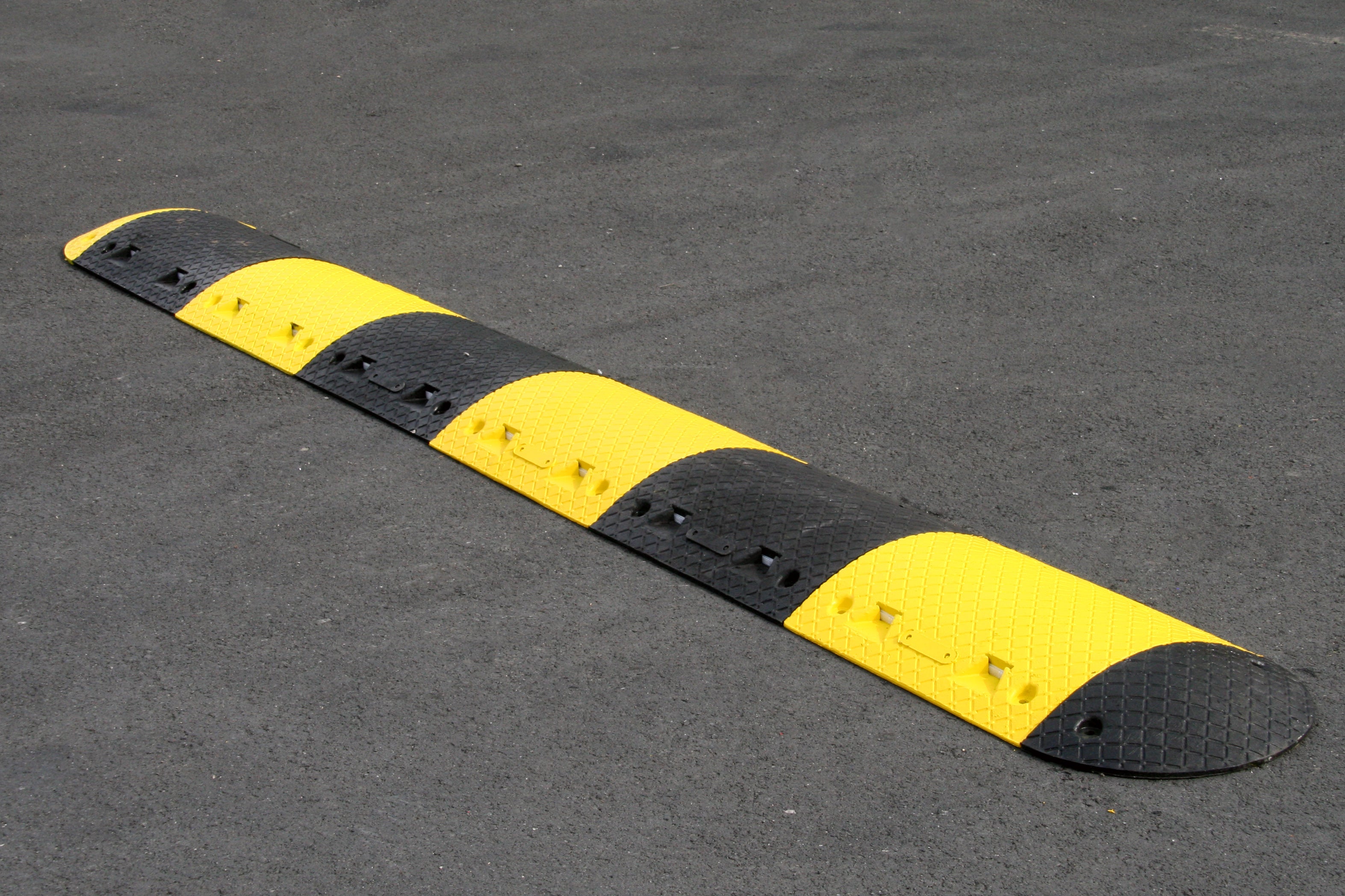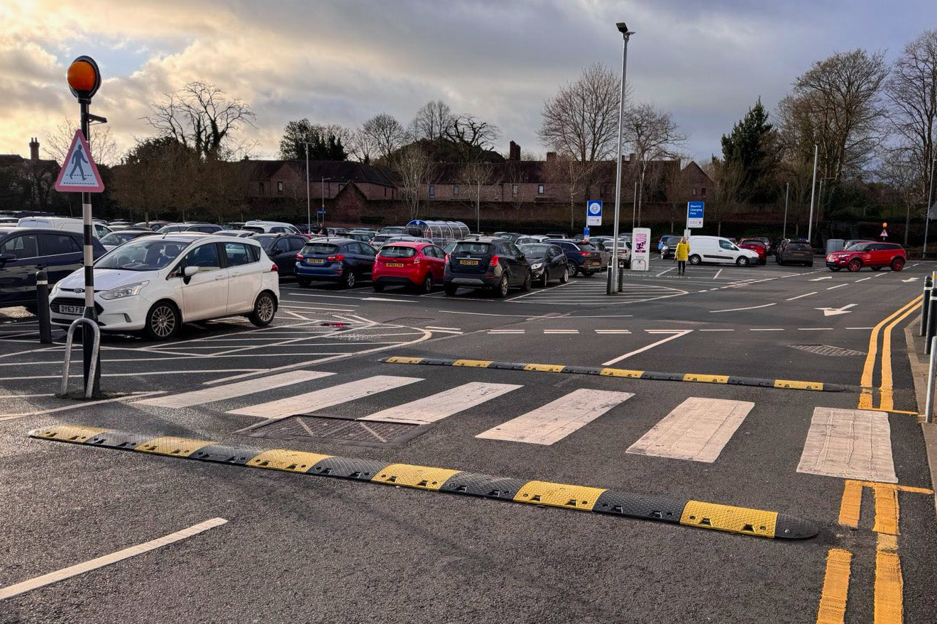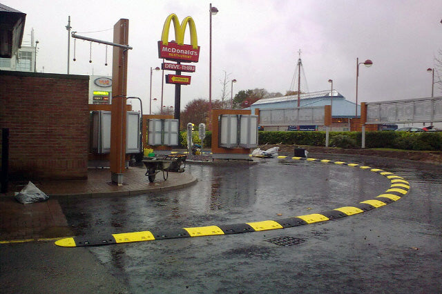Below are a few photos of our premium speed bumps in use, after installation. These include installations in supermarkets and industrial, continuous use settings.