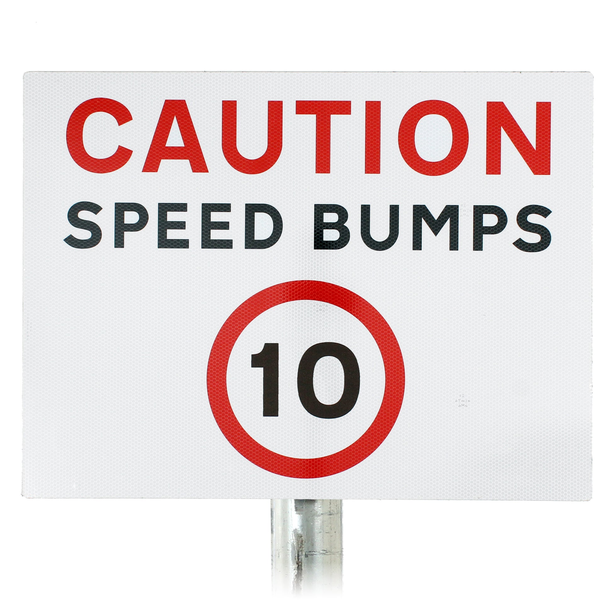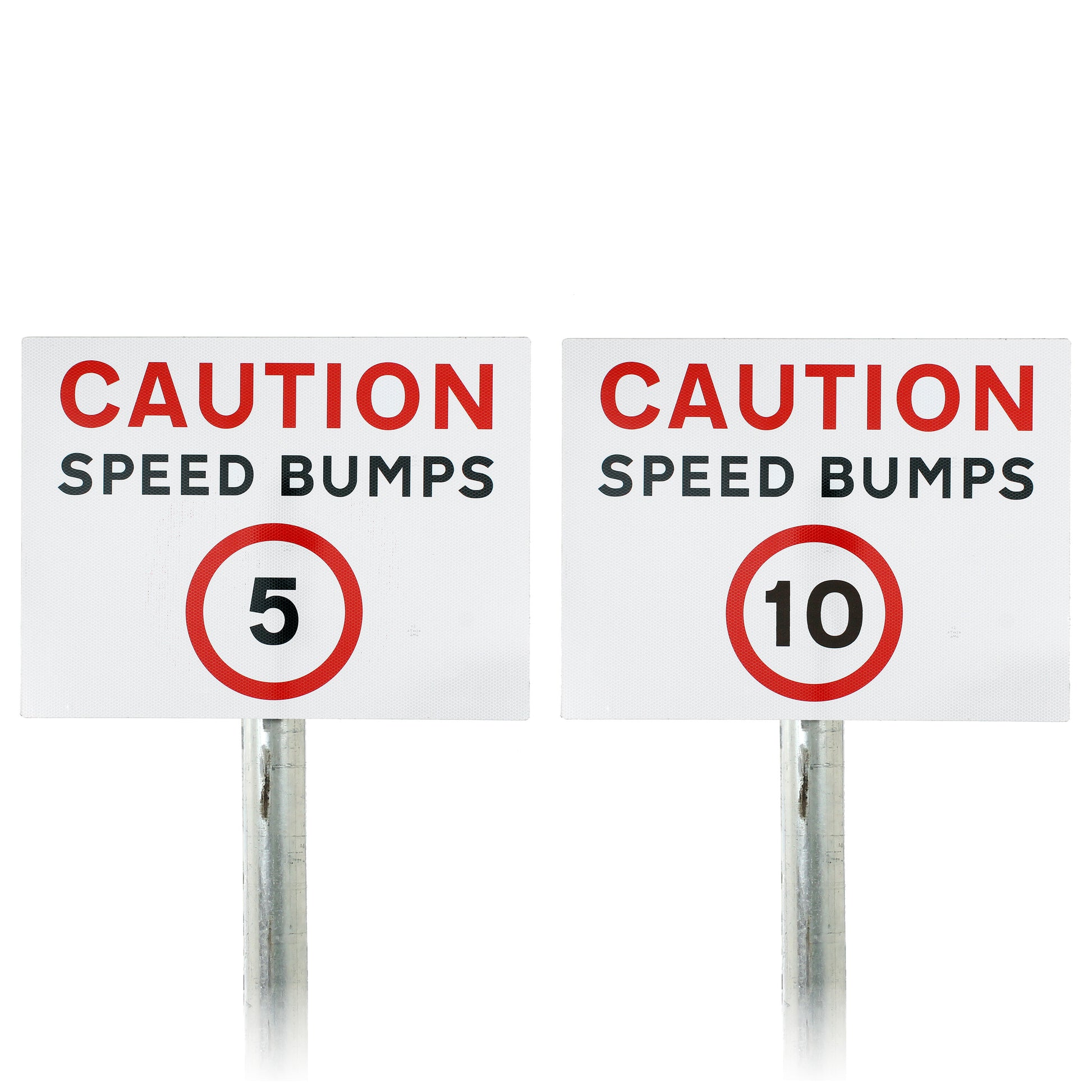 Caution Speed Bumps Sign - 5mph / 10mph - Post / Pole Mount