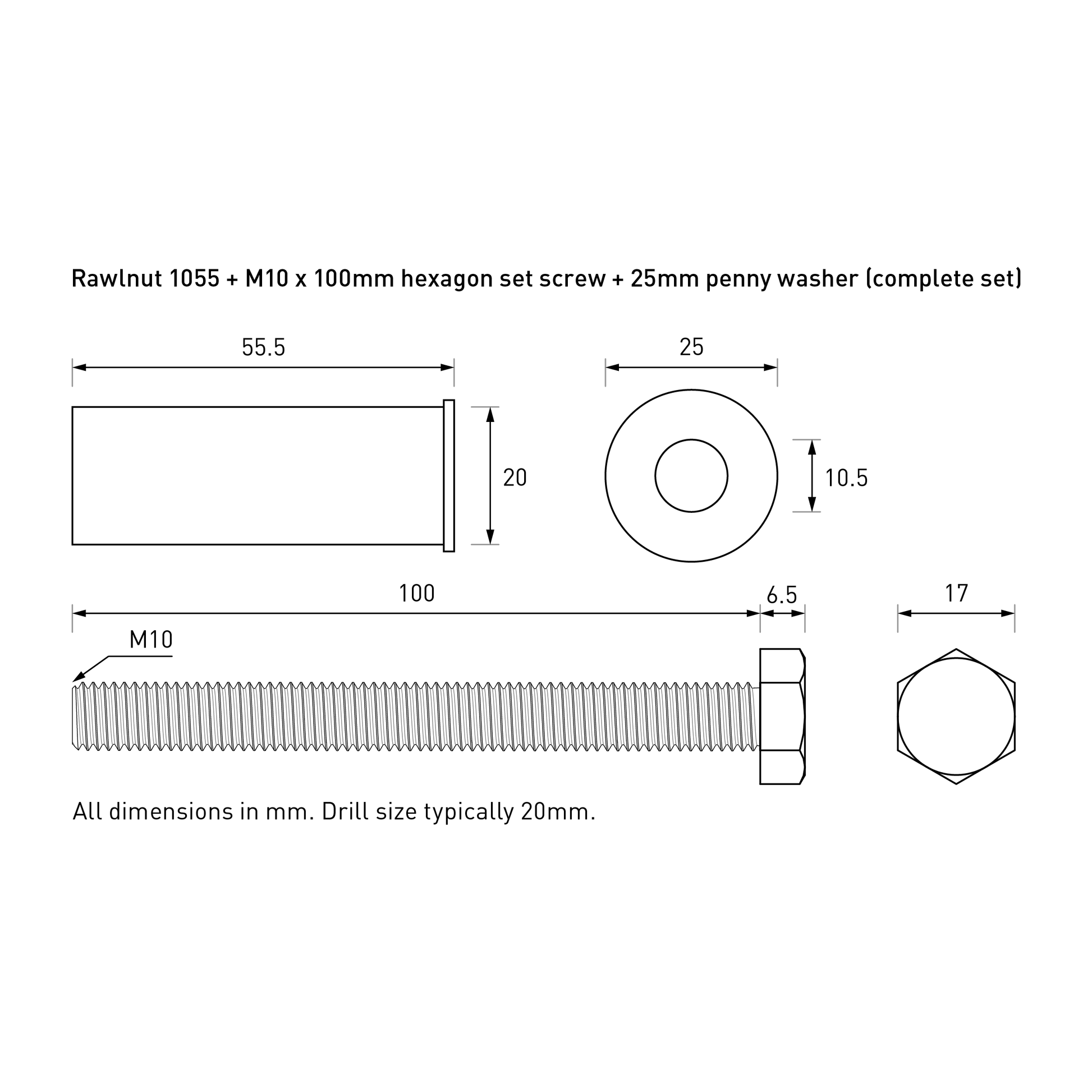 RAWLnut 1055 M10 Rubber Fixing for Tarmac - Complete Kit