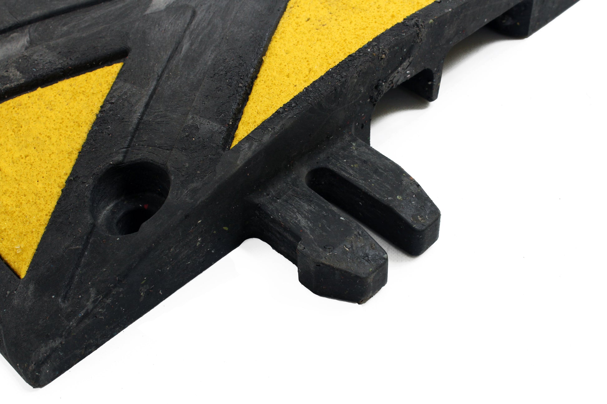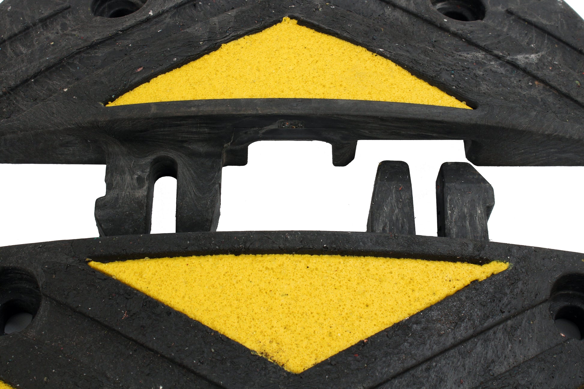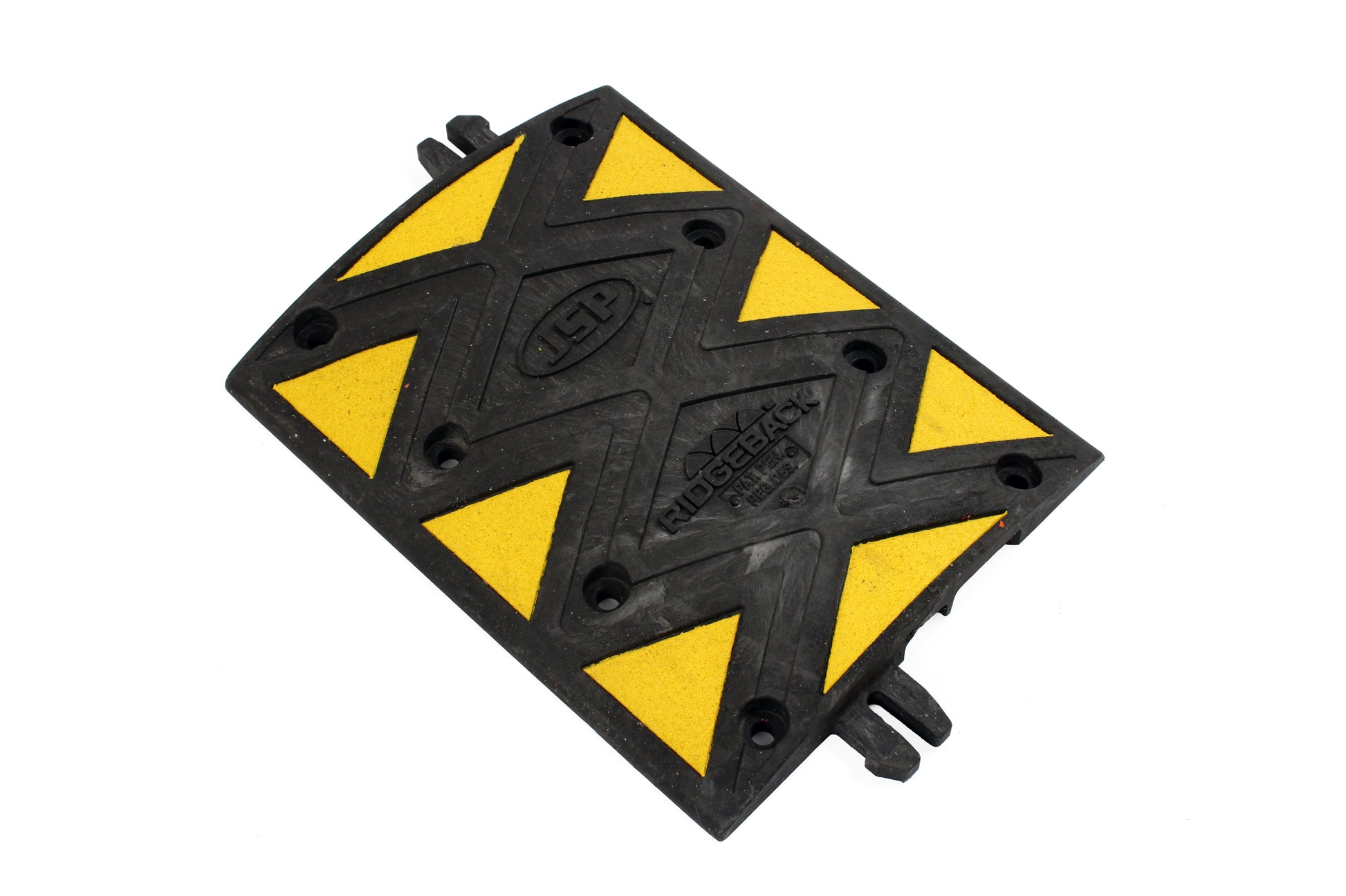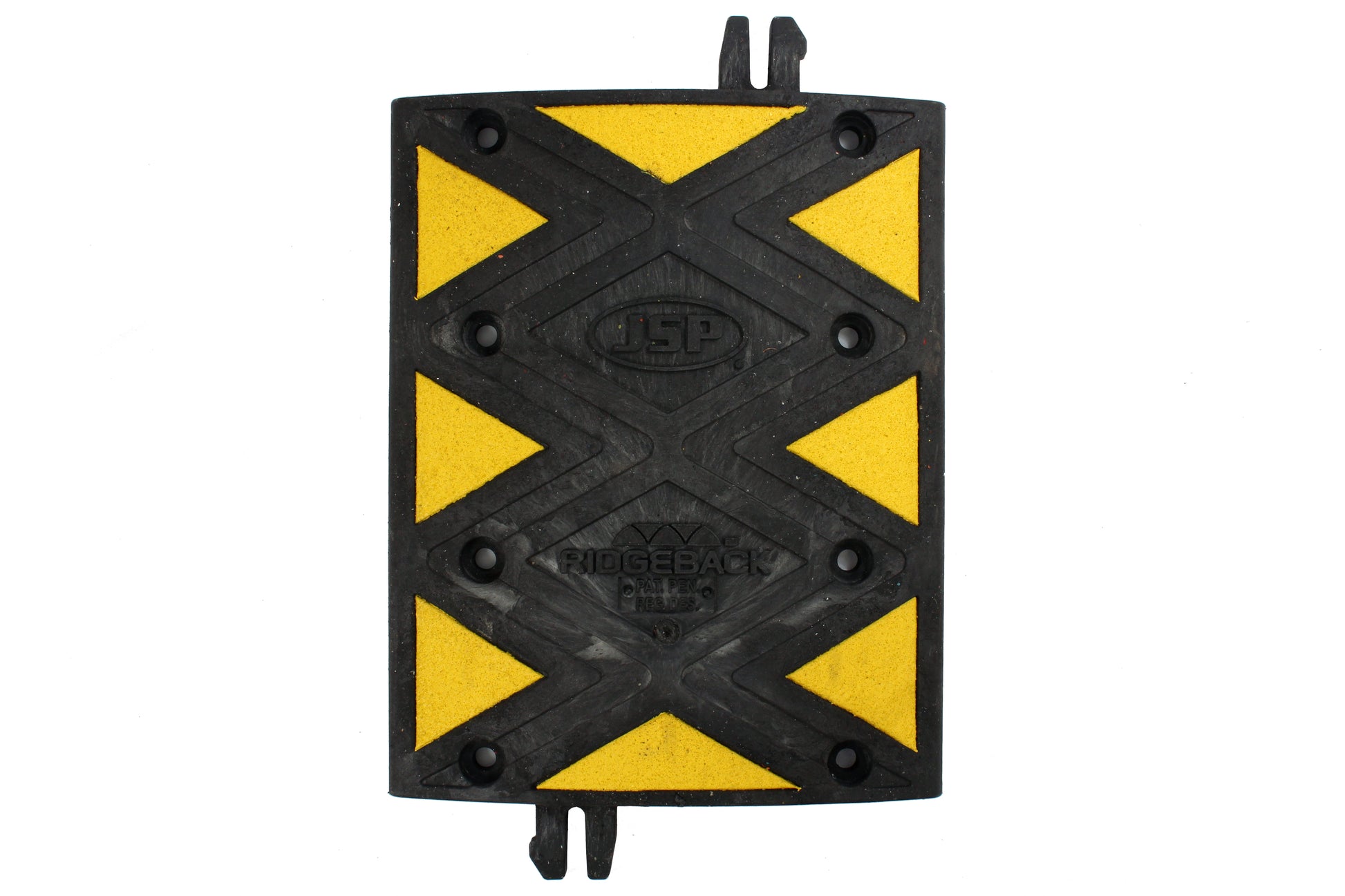 Each centre section of the Ridgeback speed bumps features eight high visibility triangles that are bonded into the surface of the speed ramp. The sections are also retro-reflective ensuring they can be easily seen whatever the weather. The end caps feature a single yellow reflective triangle.