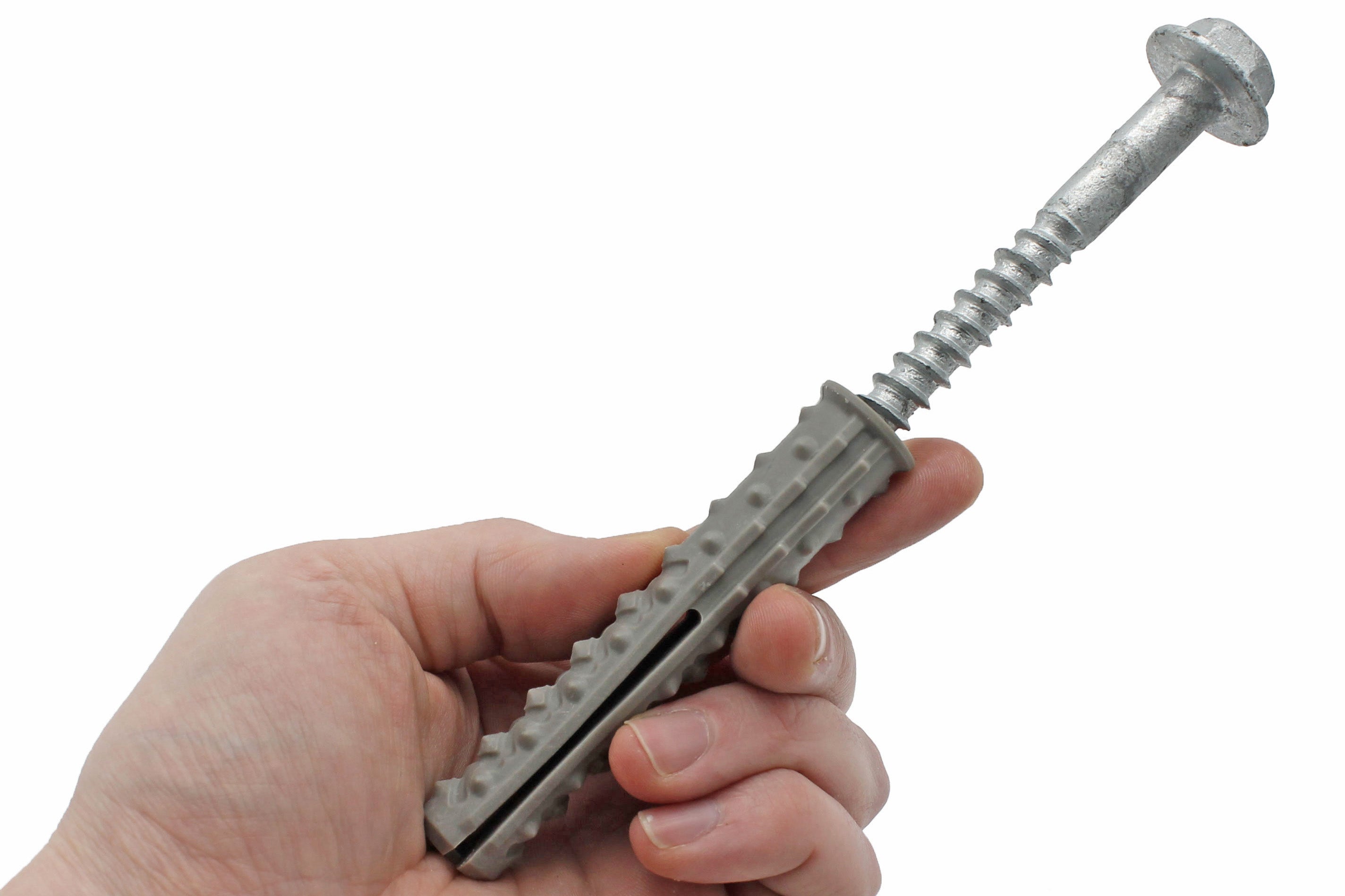 - Oversized nylon plug - distributes the load evenly and interlocks into difficult substrates like tarmac.
